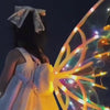 Thread the two light strings through the designated channels along each wing frame. The lights should run smoothly along the edges, creating that magical glowing outline. Connect the light strings to the host unit—you'll hear a satisfying click when properly secured.
